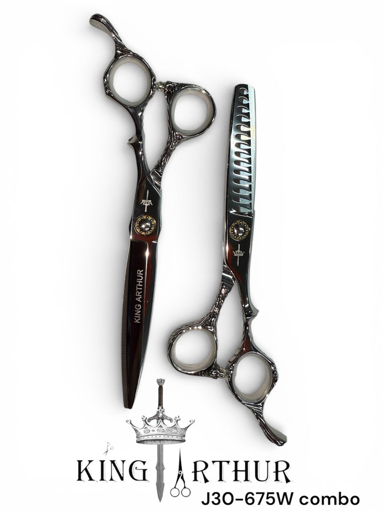 Las Tijeras King Arthur están fabricadas en acero japonés VG-10, reconocido por su durabilidad, filo superior y resistencia a la corrosión. Diseñadas para barberos y estilistas exigentes, ofrecen un corte preciso, suave y consistente, reduciendo la fatiga en la mano durante largas jornadas de trabajo. Su balance perfecto y acabado premium las convierten en una herramienta esencial para trabajos de alta precisión.
