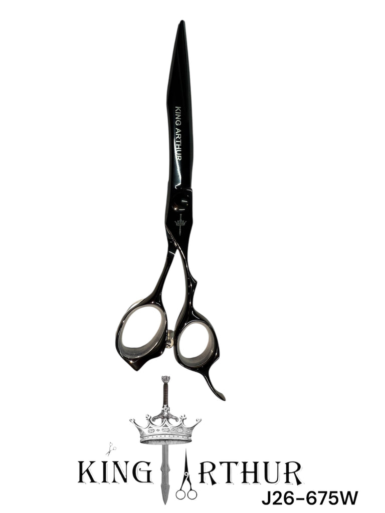 Las tijeras King Arthur de acero japonés VG 10, son hechas 100% a mano para dar mayor precisión en el filo. Se desliza fácil por el cabello para obtener un corte limpio y preciso. El material VG 10 tiene altos niveles de titanio y vanadio que aportan resistencia adicional a las hojas de corte.